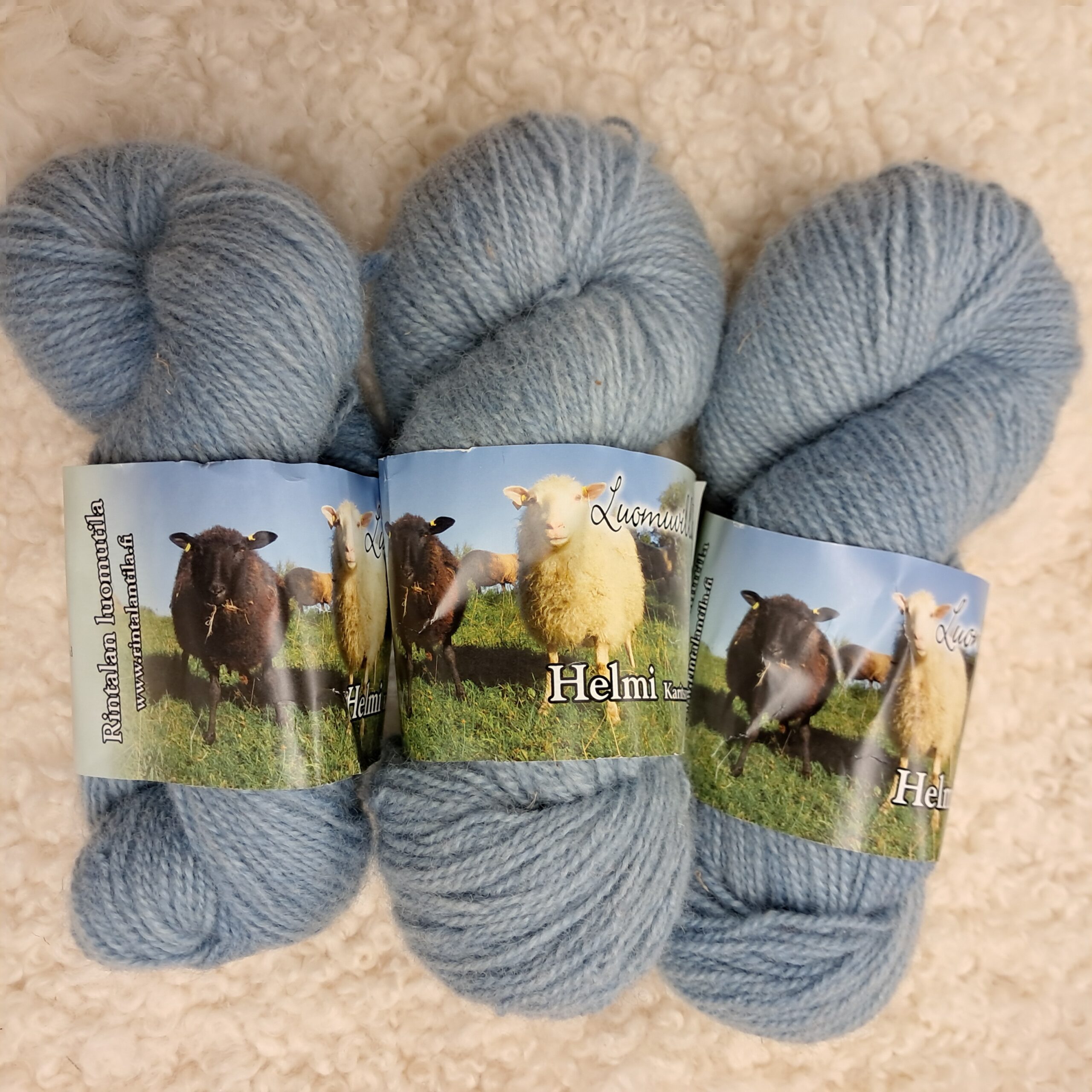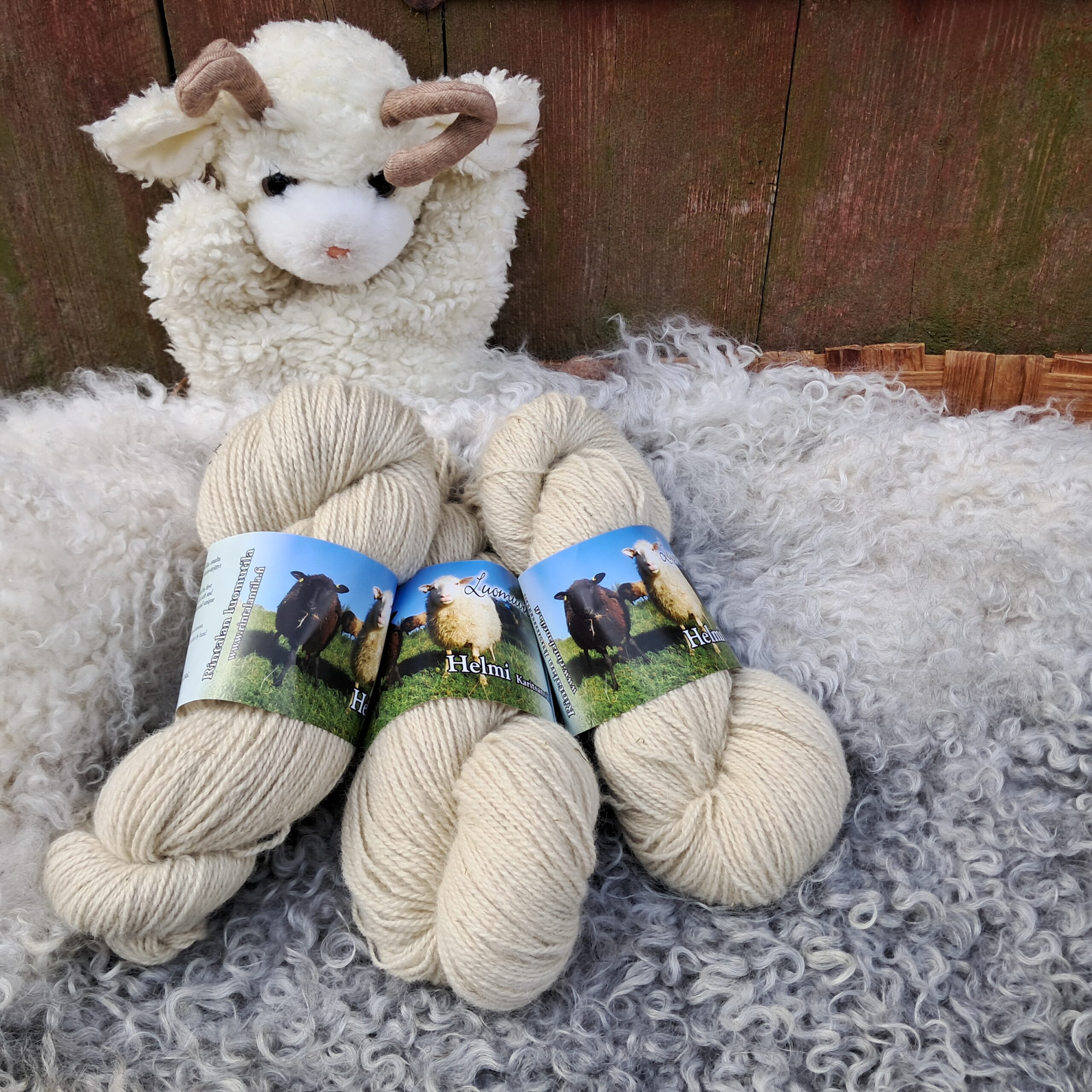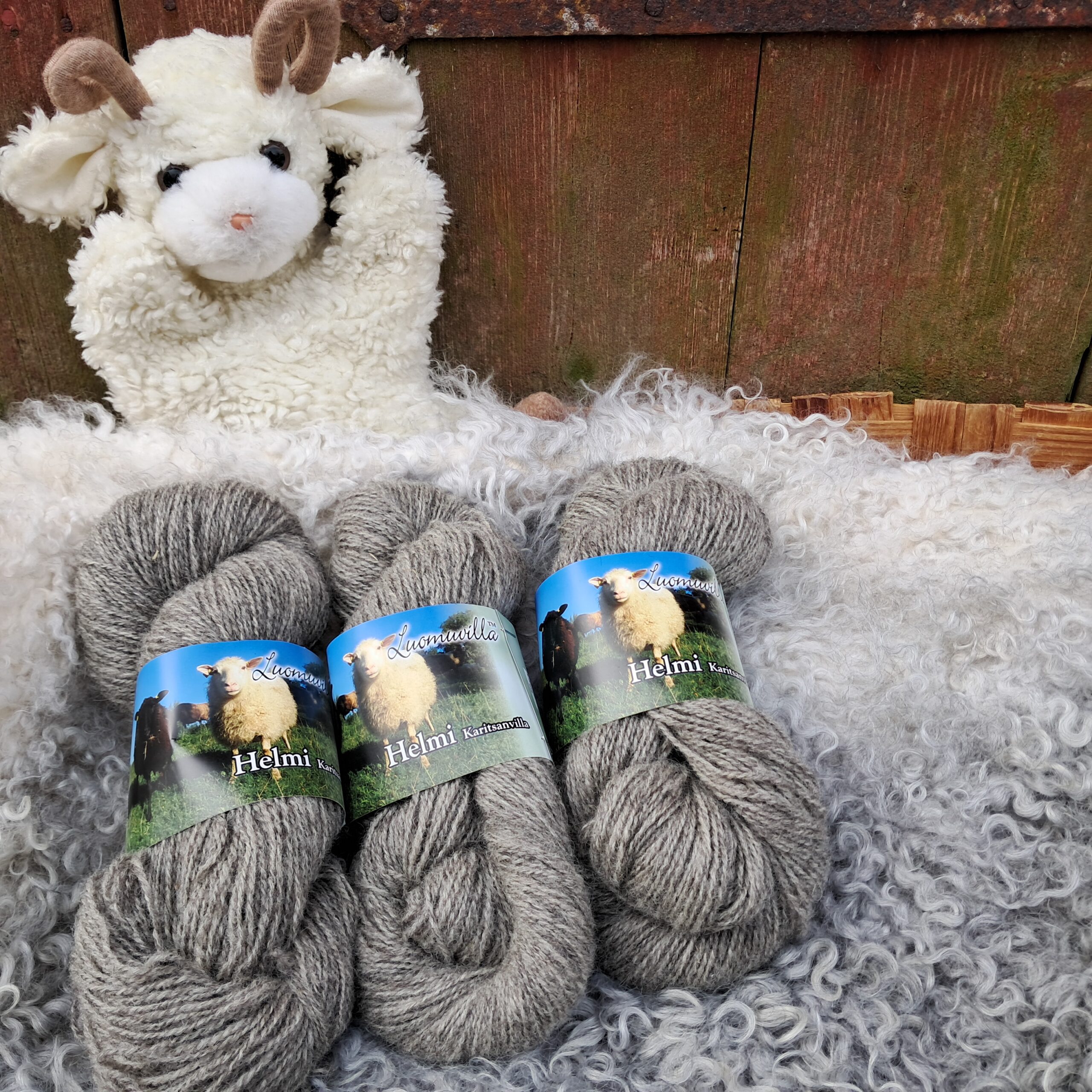 Helmi-lanka on ilmavan kevyttä ja pehmoista  lankaa, johon olemme valinneet suomenlampaan karitsanvillaa. Helmi sopii hyvin neulepaitoihin, myssyihin, huiveihin ja käsineisiin ja se on ihanan pehmeää vauvaneuleisiin. Löyhäkierteisenä se ei kestä sukissa, mutta siitä voi neuloa säärystimiä ja kynsikkäitä. 100 grammassa on noin 270 m lankaa, puikot 3,5-4 sopivat hyvin. Helmi langasta voi neuloa esim. Luotolaisen, Jurmo-neuleen tai Halaus-huivin .  Helmi- karitsanvillalanka on hyvä kotimainen vaihtoehto korvaamaan islantilaisneuleissa olevaa ohuempaa Lettlopilankaa. Valittavissa luonnolliset lampaan omat värit valkoinen, harmaa, lampaanmusta ja käsinvärjättyjä vaihteleva valikoima.