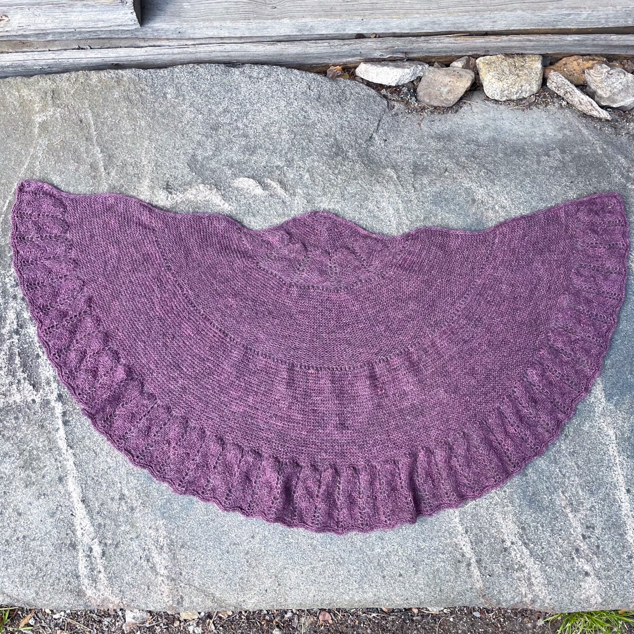 Valmiin huivin kostutus ja pingottaminen tuo pitsin esille ja huivi saa oikean mittansa.
