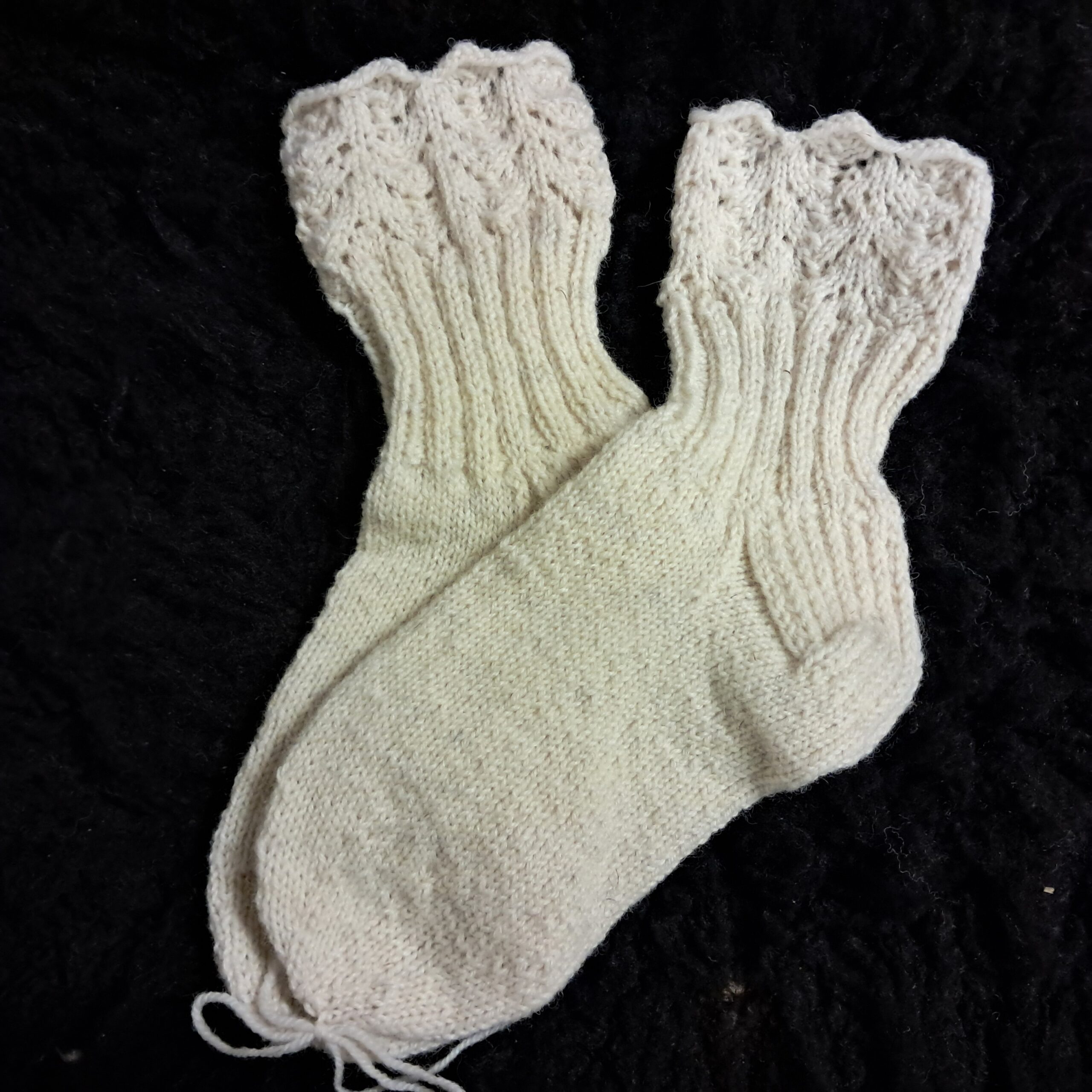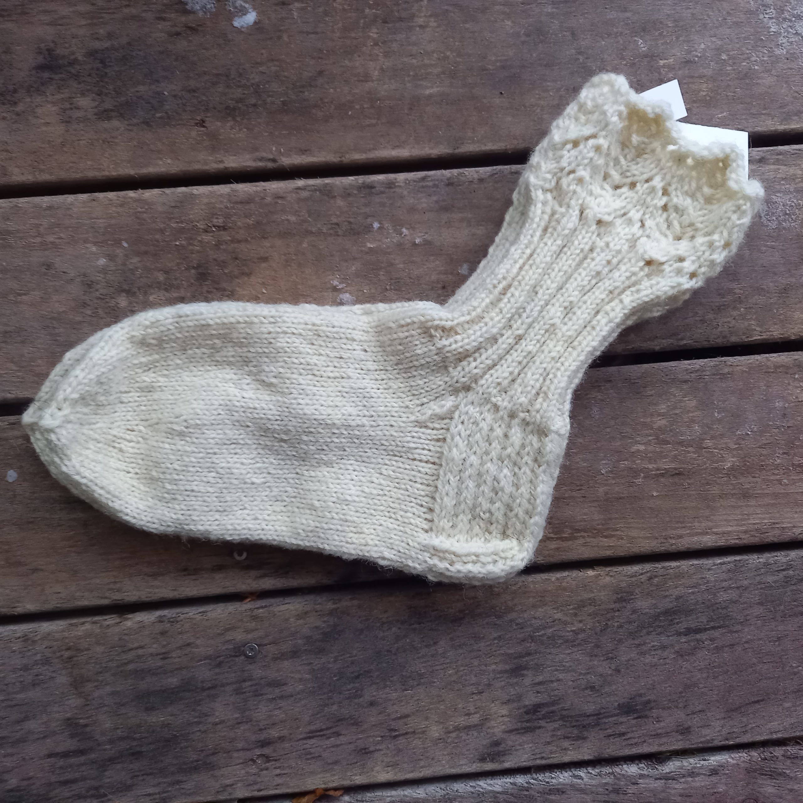 Luonnonvalkoisesta Ilo & Suru langasta käsinneulotut ihanat lämpimät sukat. Pesu käsin tai villapesuohjelmalla. Tilattaessa vain sukat, tai esimerkiksi sukat ja pohjalliset, ne mahtuvat pikkupakettiin ja se toimitetaan suoraan postilaatikkoon tai -luukkuun.